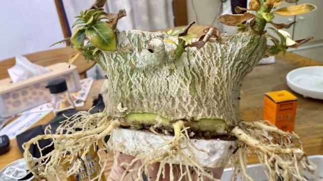 塊根植物 冬型コーデックスの植え替え ディオスコレアの植え替え2025.3.20前回から約8ヶ月が経過しました。植え替え2025.11.24植え替えをどーするか迷ってましたが鉢替えした方が良い株があったので適期から遅れちゃいましたが植え替えを行いました。萎れてる??と思いますが... 2026.01.03 塊根植物